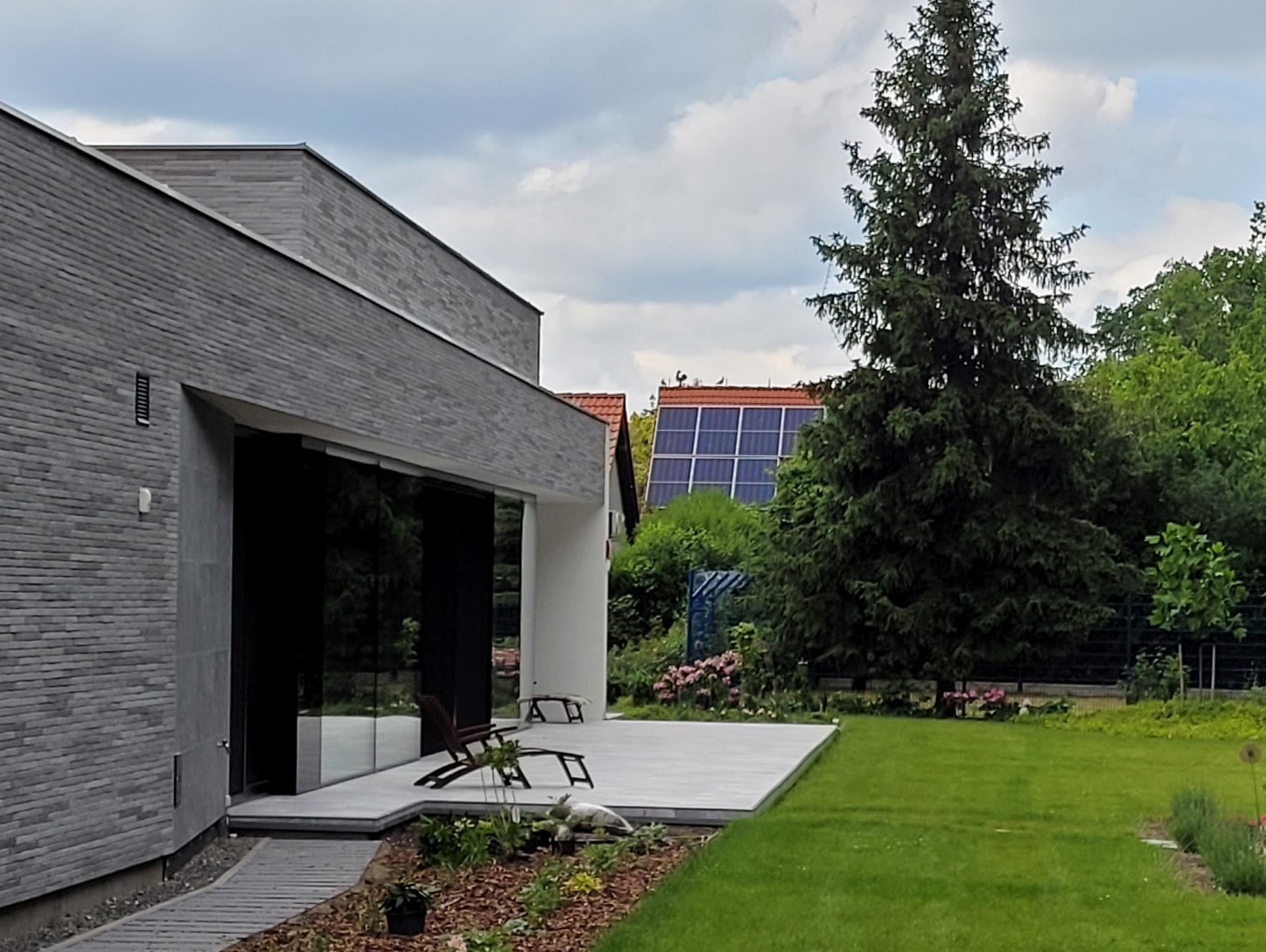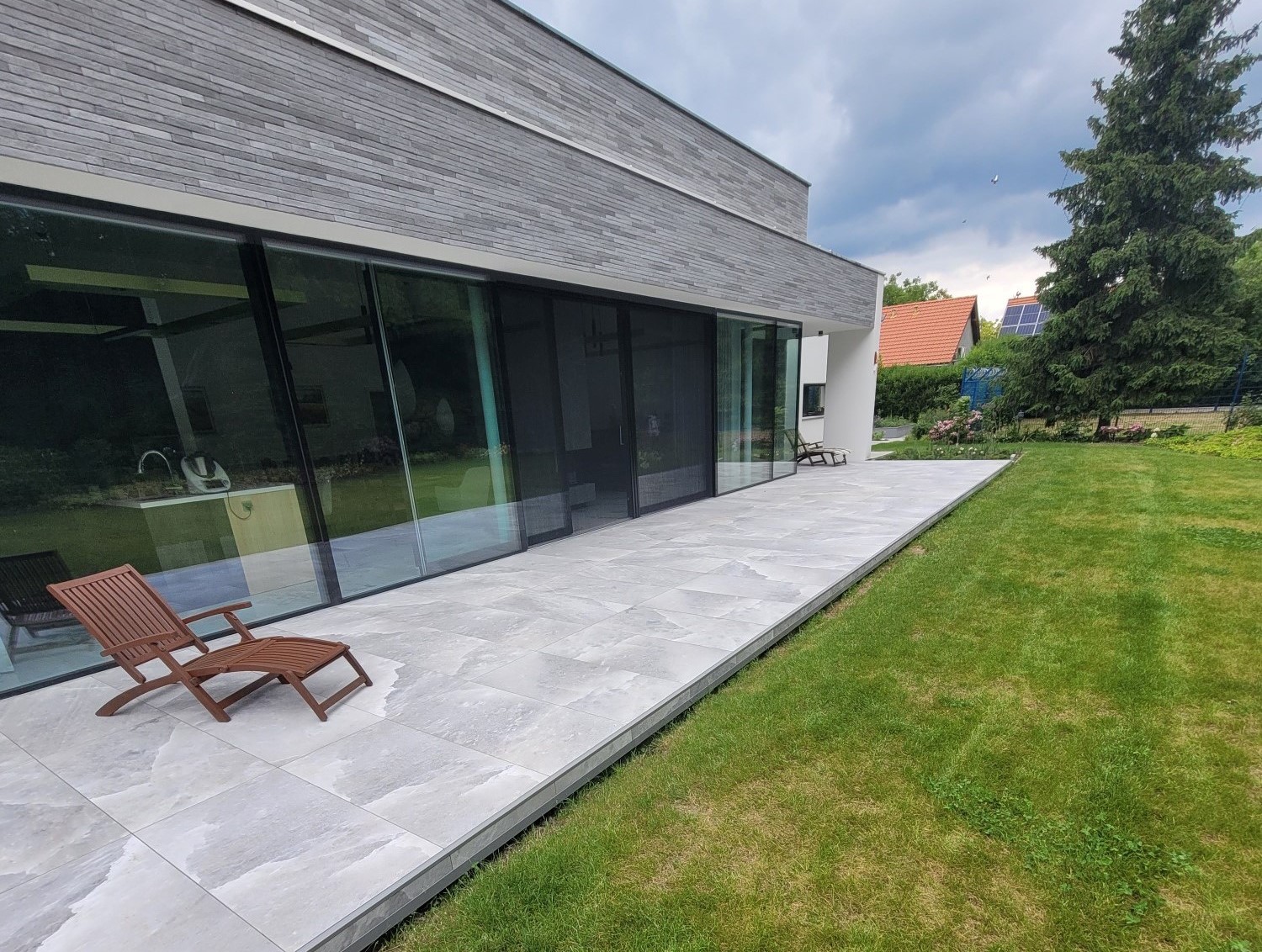 - Wykończenie: płyta gresowa 2 cm, deska tarasowa, płyta betonowa.