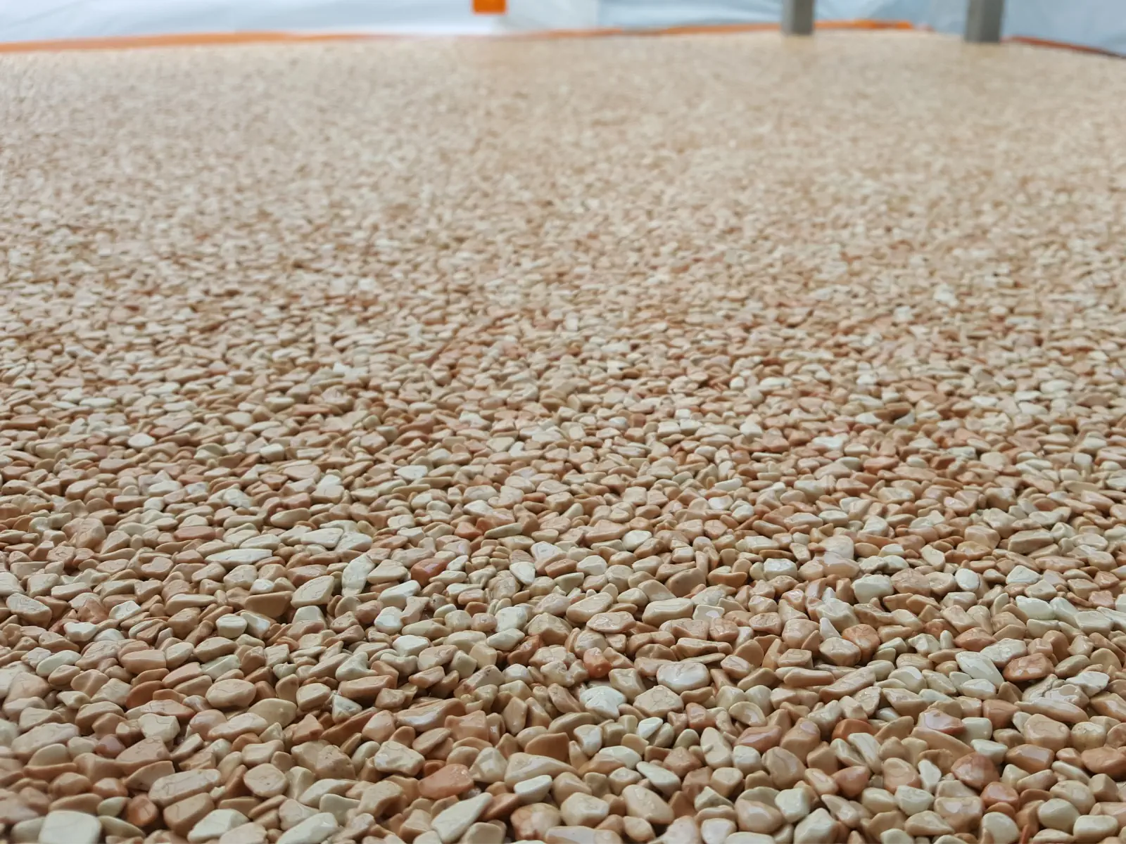 Kamienny dywan to nowoczesna, trwała i dekoracyjna nawierzchnia powstająca z połączenia otoczaków marmurowych (kruszywa marmurowego) z żywicą poliuretanową. Po związaniu tworzy jednolitą, estetyczną oraz odporną powierzchnię, przeznaczoną do zastosowań zarówno wewnętrznych, jak i zewnętrznych.