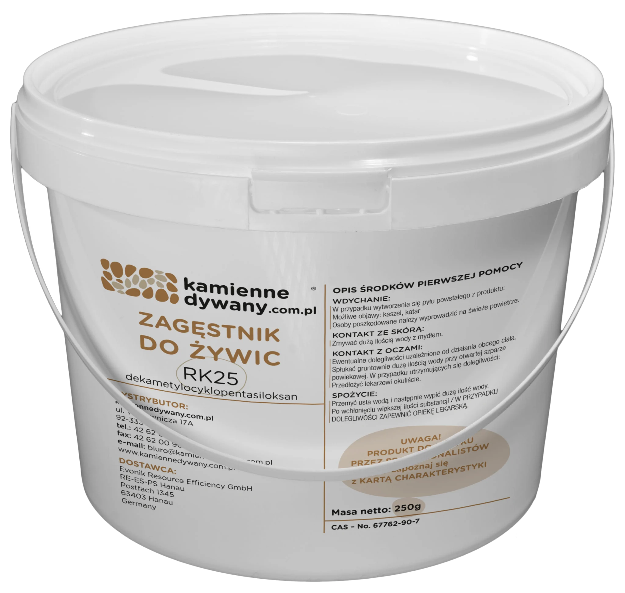 Jest to specjalny dodatek do żywicy, który zwiększa jej lepkość i zapobiega spływaniu mieszanki z powierzchni pionowych. Dzięki zastosowaniu RK25 mieszanka kamiennego dywanu lepiej trzyma się podłoża, co umożliwia łatwe i estetyczne wykończenie pionowych elementów.